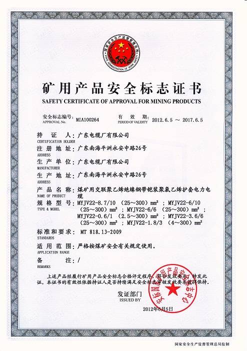 礦用電纜證書
