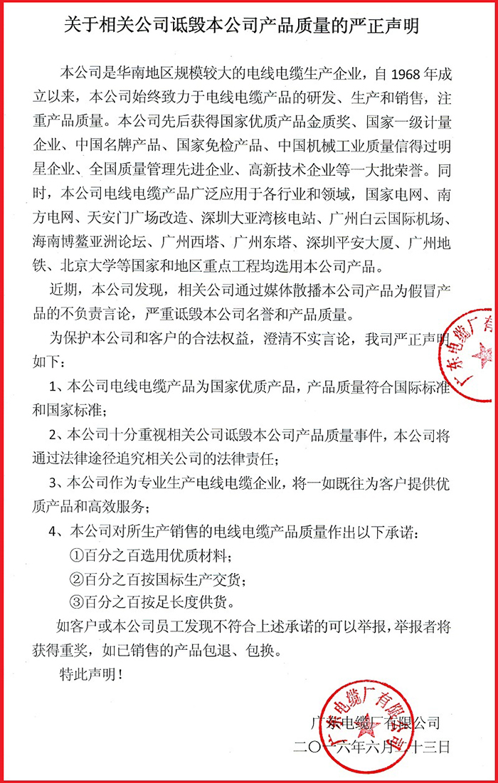 關(guān)于相關(guān)公司詆毀本公司產(chǎn)品質(zhì)量的嚴(yán)正聲明