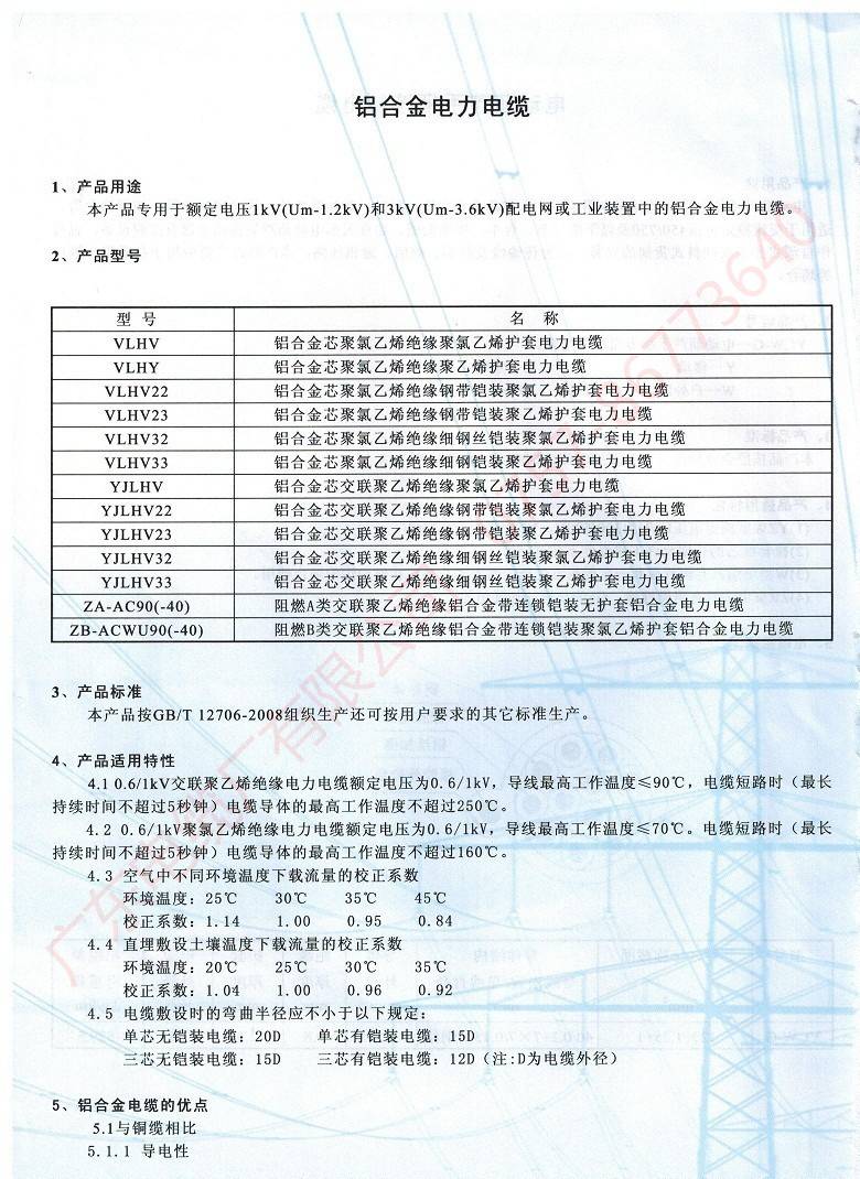 鋁合金電力電纜