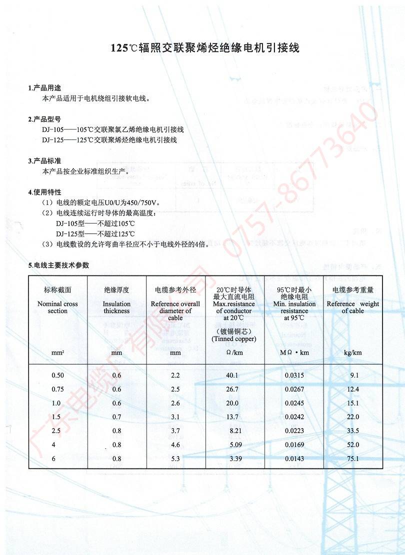 125℃輻照交聯(lián)聚烯烴絕緣電機引接線