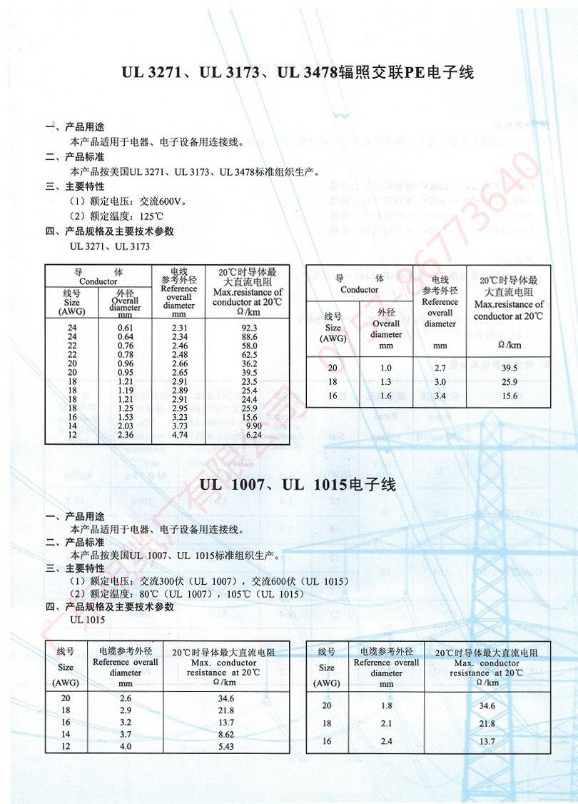UL1007/UL1015電子線