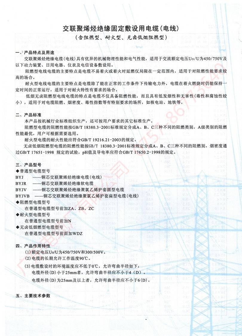 交聯(lián)聚烯烴絕緣固定敷設(shè)用電纜
