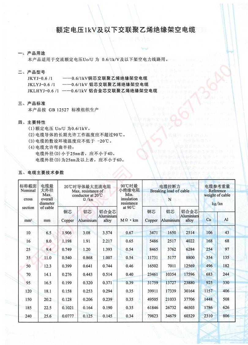 1kV及以下交聯(lián)聚乙烯絕緣架空電纜