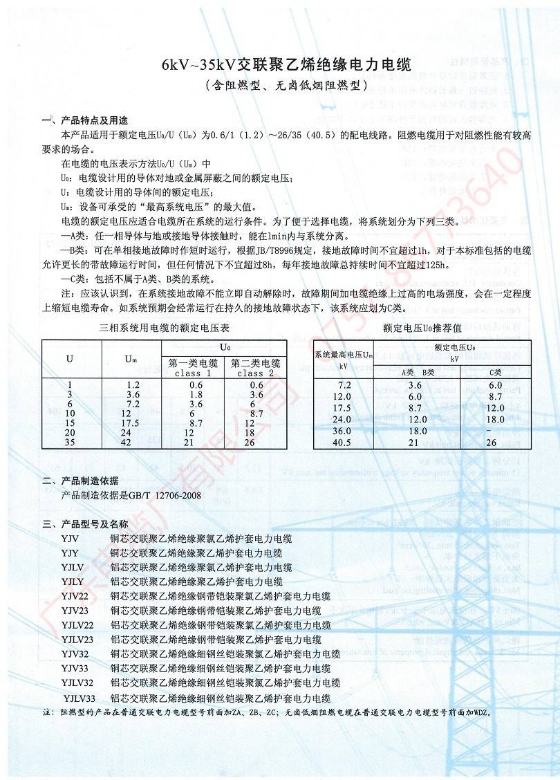 6~35kV交聯(lián)聚乙烯絕緣電力電纜